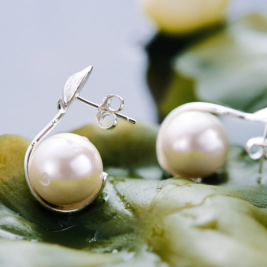 Pendientes de hoja y perla de plata de ley 925